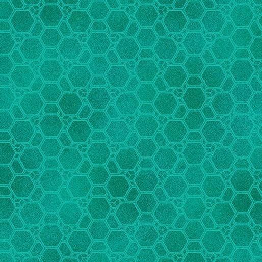 This fabric from the Newer Worlds collection designed by Rob Appell for Benartex features repeating geometric prints in teal. 100% Cotton. 44" Wide.