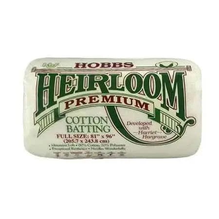 Hobbs Bonded Fibres has developed this cotton batting to be a natural fibre alternative to polyester for the discriminating quilter. Heirloom is wonderful to quilt for HAND or MACHINE quilters and can be quilted up to 3½ inches apart.