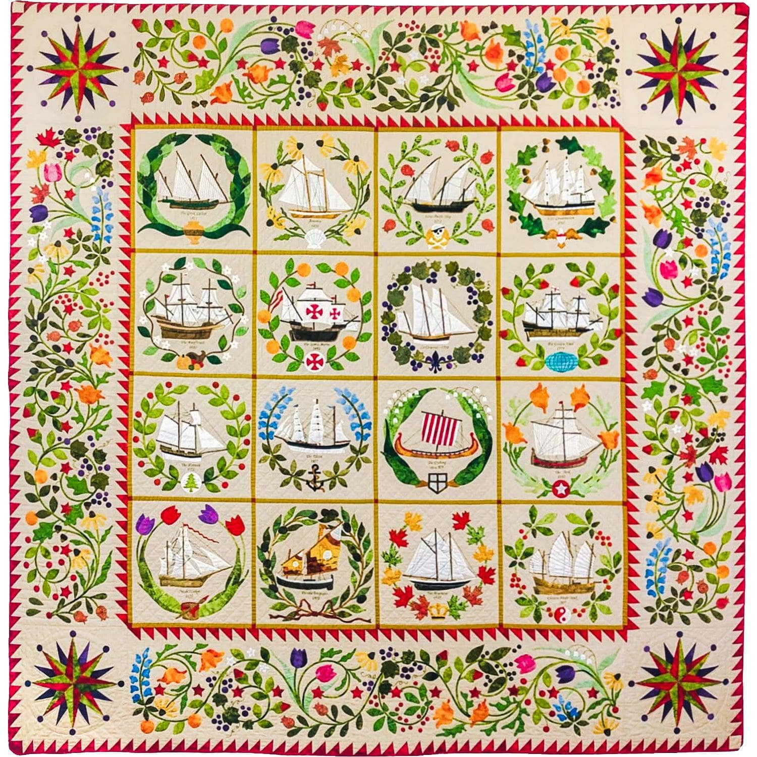 Who can resist Sue Garman's "Ladies of the Sea"? Each of twelve patterns includes either two appliqued ships or one appliqued border and a pieced cornerstone compass. The patterns have very detailed instructions, as well as the history behind each of the fabulous "Ladies." This grand quilt is one that will be treasured by generations to come. If you are intimidated by the amount of applique, just remember Sue's admonishment: "no matter how much applique there is in any block or border, it is always done one piece at a time - and there is no doubt that this quilt is worth the time and effort you will put into finishing it!"