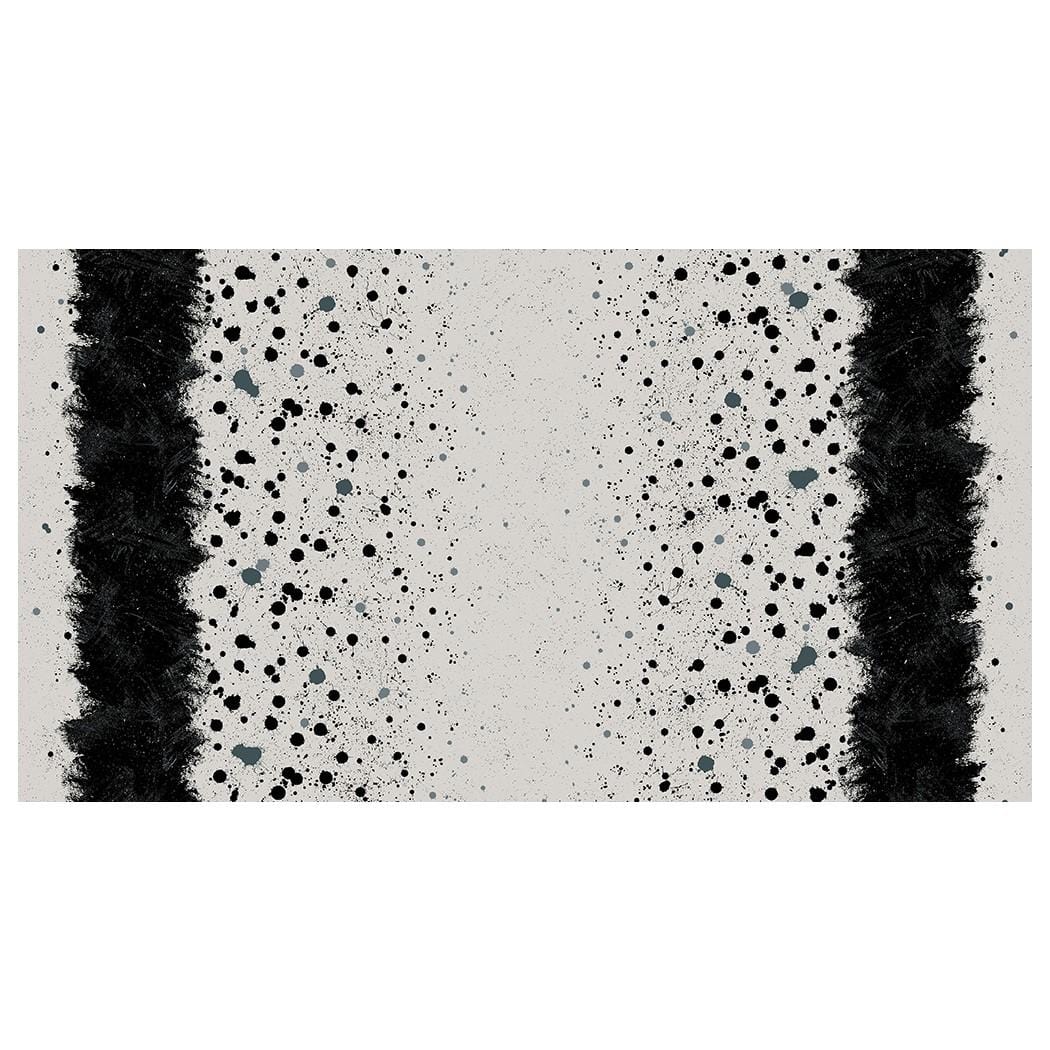 This is a double border print from Fabric from the Basement designed by Giucy Giuce for Andover with shades of blue brush strokes and splatters on light grey, pattern runs length of fabric. 100% Cotton, 44" Wide.