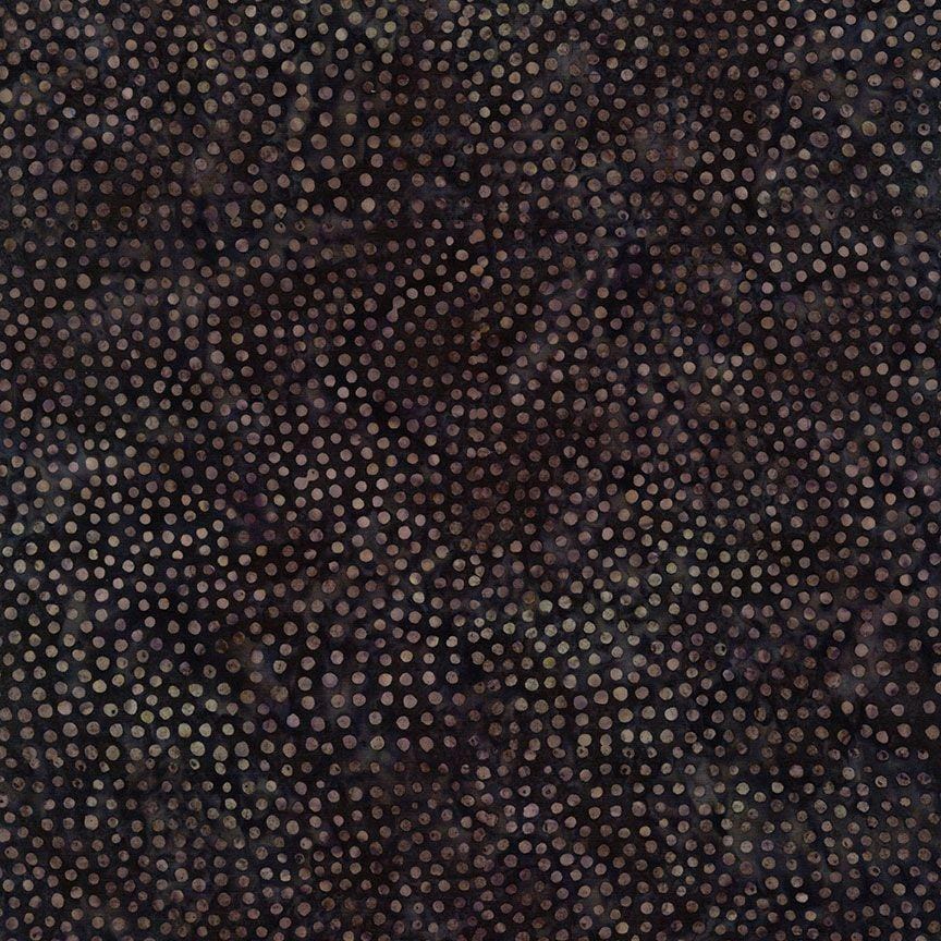 Tonga Lakeside collection designed by Daniela Stout for Timeless Treasures is hand-dyed batik fabric. This collection features beautiful florals, stunning geos, and spiraling dots in a vibrant color palette of blues, creams and browns. This fabric features golden spots on black. 100% Cotton, 44" Wide.