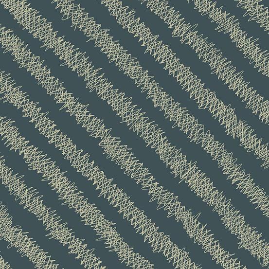 This fabric from Fabric from the Basement designed by Giucy Giuce for Andover features scribbled diagonal stripes in light yellow and deep teal green. 100% Cotton, 44" Wide.