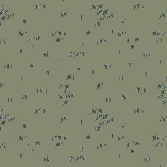 This fabric from Fabric from the Basement designed by Giucy Giuce for Andover features tally marks on the basement wall in tone on tone murky green. 100% Cotton, 44" Wide.