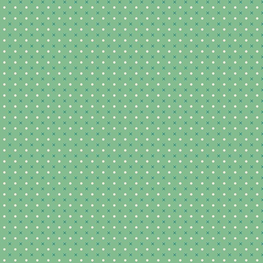 Dot, dot, stitch, stitch, oh-what fun this is! Bee Dots by Lori Holt of Bee In My Bonnet for Riley Blake Designs is a celebration of the fashionable and iconic print we all adore. Lori rejuvenates the dot in her classic and vintage style. From florals with dots to dots on dots and available in colors like berry, pumpkin, marigold, basil, and sea glass. This new basic will inspire and delight oh-sew cute quilts and projects for your home. Each print is named after Lori's vintage relatives on her fathers's side of the family. This geometric print features an array of x's and dots on green. 100% Cotton, 44" Wide.