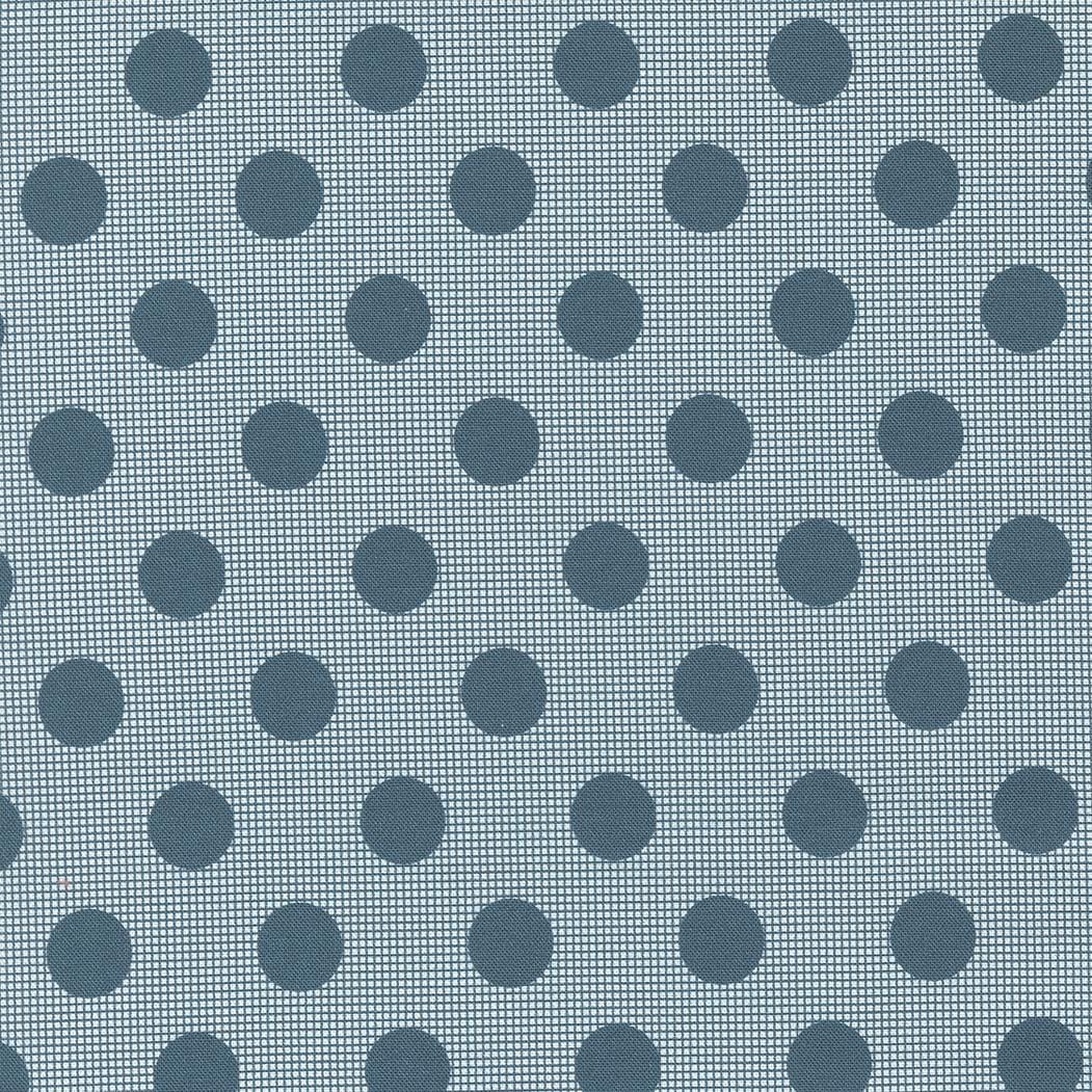 This blender in the Greenstone collection designed by Jen Kingwell from Moda features large blue dots on light blue. 100% Cotton, 44" Wide.