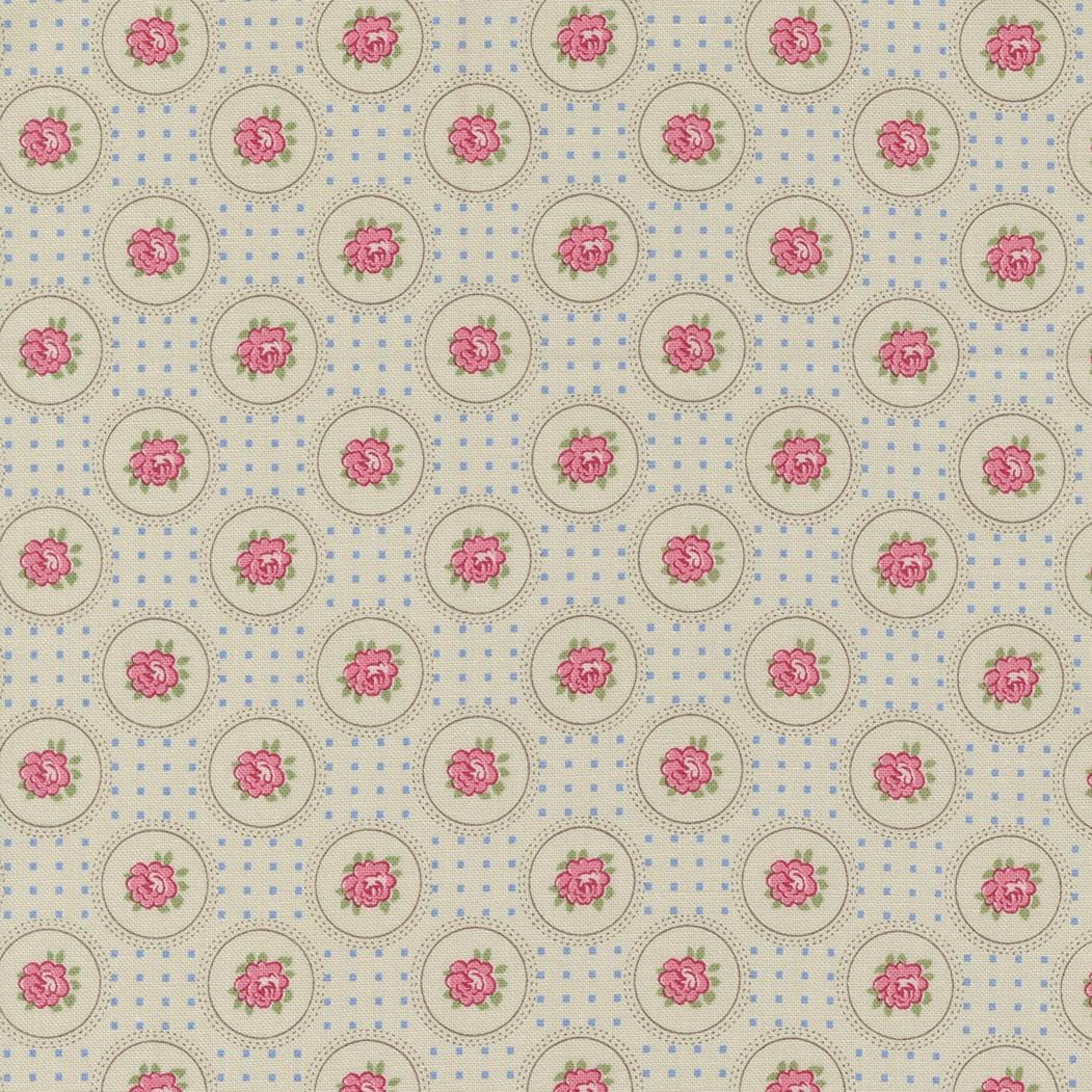 With a little wink of red to accompany the gentle hues of faded chambray, dusty pink, natural linen and soft white, the vintage prints of Sweet Liberty celebrate the longstanding blessings of our nation. Checks & classic stripes join well-loved designs that have surrounded us for generations, embracing all who have come before us & paved the way for us. Create quilts and projects with Sweet Liberty that are a beautiful reminder of the foundations of liberty, & the freedoms that mean so much. This fabric in the Sweet Liberty collection designed by Brenda Riddle from Moda features circle roses on green. 100% Cotton, 44" Wide.