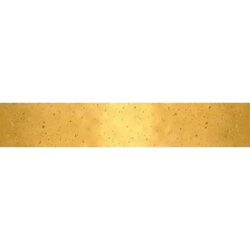 This fabric features a gradient watercolor ombre with dark and metallic gold splatter in honey. 100% Cotton. 44" Wide