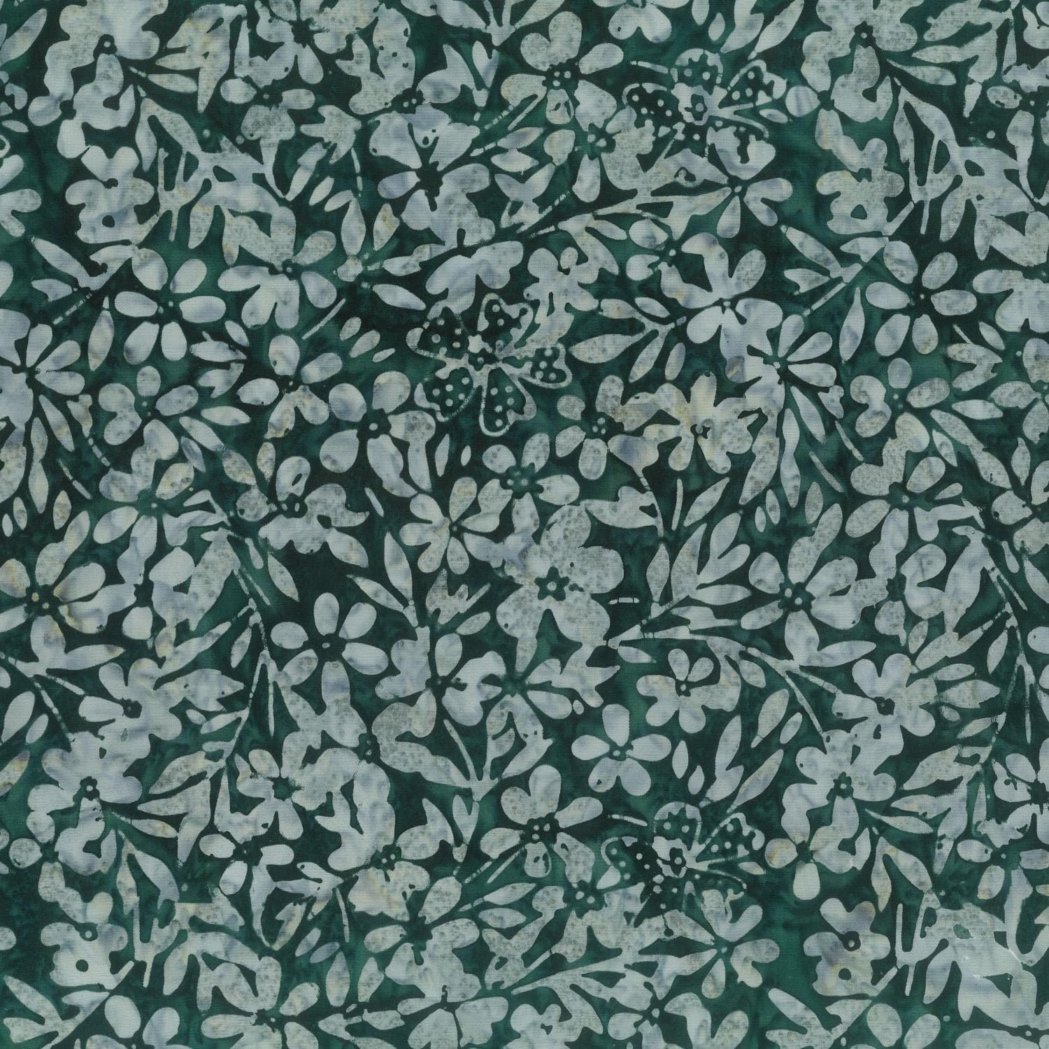 This batik in the Pearls collection designed by Banyan Batiks Studio from Banyan Batiks Northcott features wild daisies in teal green. 100% Cotton, 44" Wide.