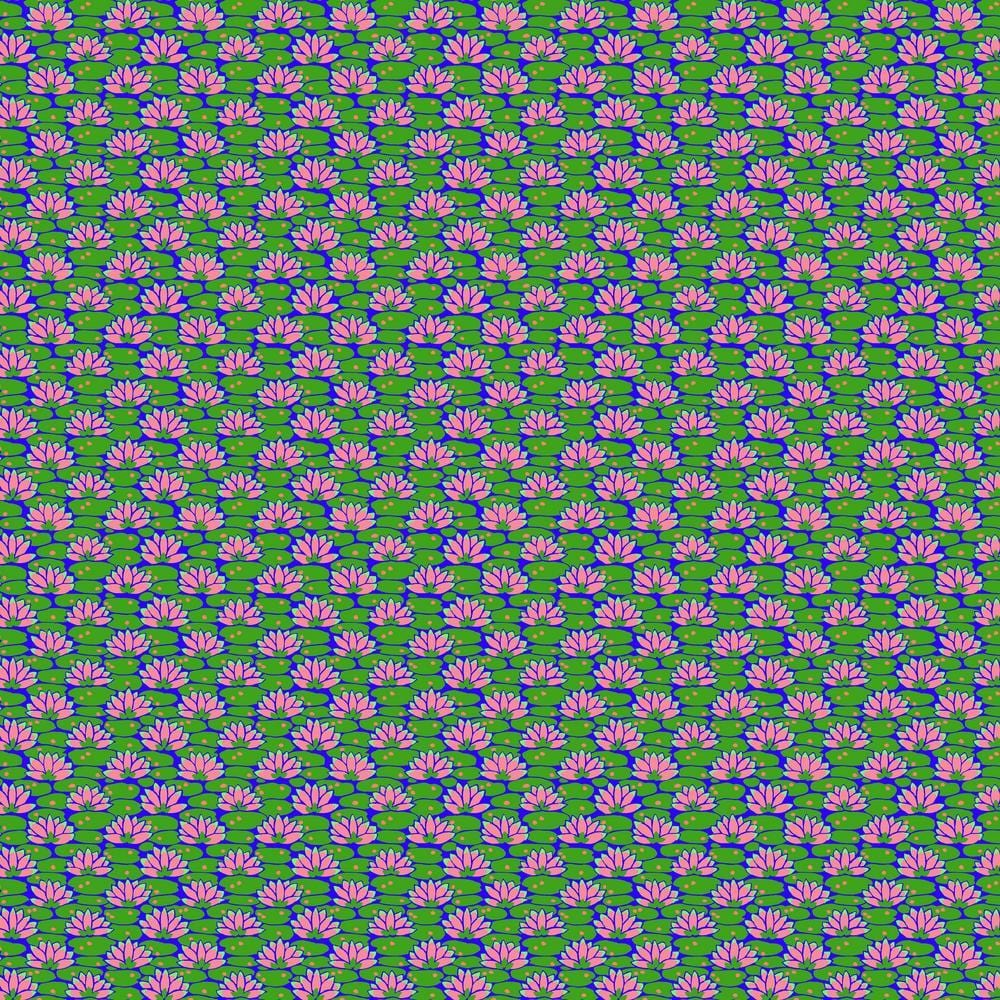 This fabric in the Temple Garden collection designed by Philip Jacobs of Snow Leopard Designs from FreeSpirit Fabrics features a lily pad filled pond design. 100% Cotton, 44" Wide.
