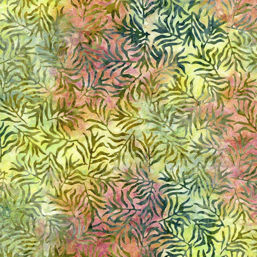 This hand-dyed batik Tonga Rose Petal collection designed by Daniela Stout from Timeless Treasures features beach grass on a multi colored background. 100% Cotton, 44" Wide.