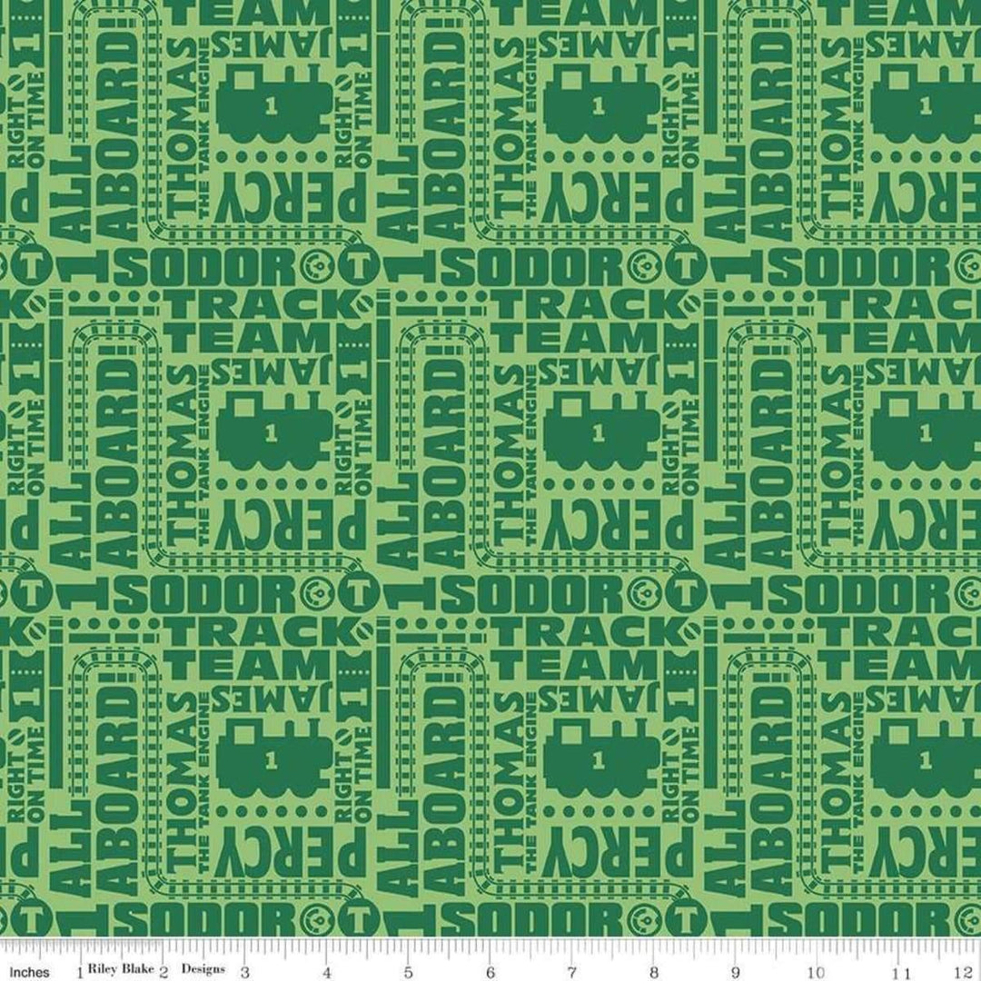 Text in Green. This text print features words and phrases from Thomas & Friends.