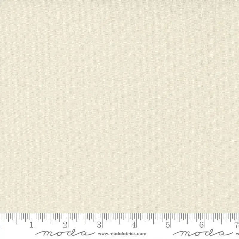 This fabric in the Bella Solids collection from Moda features a soft eggshell cream. 100% Cotton, 44" Wide.