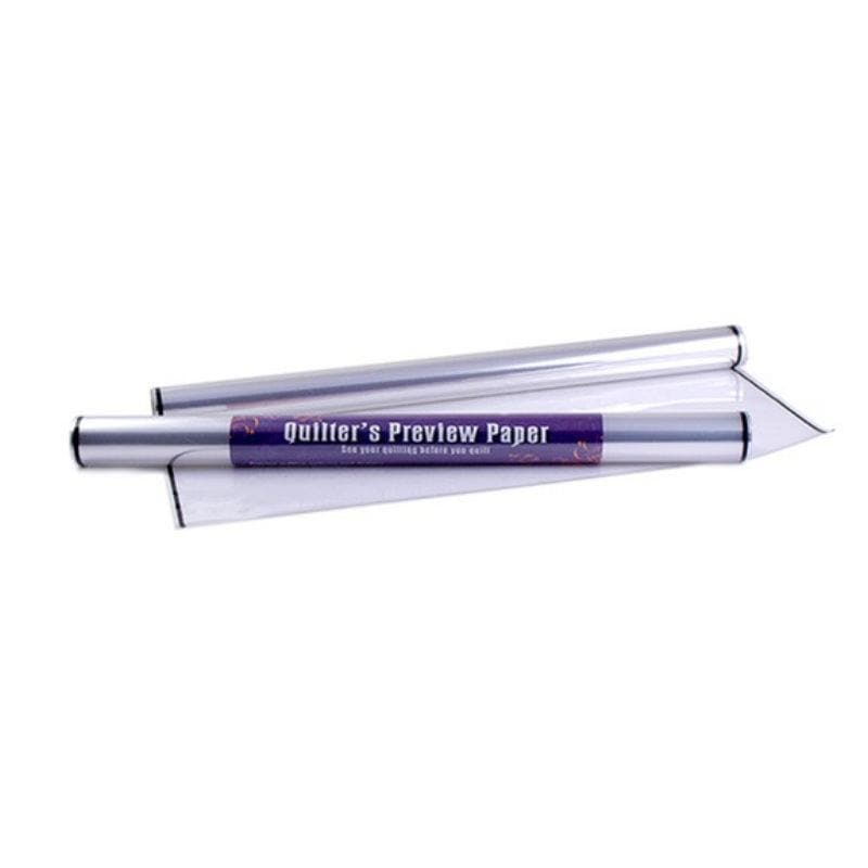 Quilter’s Preview Paper (20in x 25ft, 41.66 sq ft) is a design tool to help quilters audition quilting motifs for their quilt. Simply lay the clear film over the quilt and use a marker to to draw quilting designs. (Marks are easily removed with alcohol and a scrap of batting.) Quilter’s Preview Paper is also useful for applique placement. Full instructions for use included.