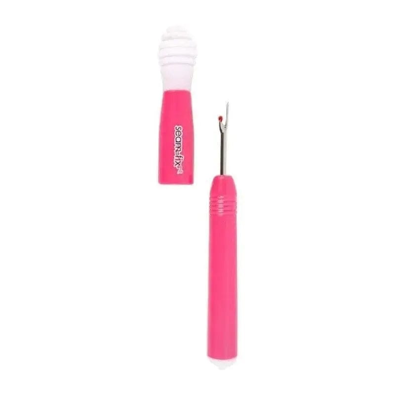 Each seam ripper has a sharp blade, safety ball & cap. Special plastic material on the cap and end grabs and removes excess threads from fabric.