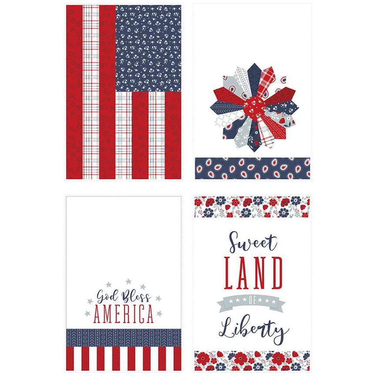 Oh my stars! American Beauty by Dani Mogstad is everything you want in a patriotic collection. You'll adore the florals, bursts, geometrics, plaids and paisleys in white, red, storm, and navy. From backyard barbeques to firework-viewing quilts and matching family apparel to celebrating a veteran- this collection will inspire you to shake your sparklers and create something patriotic today! Don't miss the flag panel featuring dresden quilt blocks! It's a star-spangled celebration! This home decor panel is printed on lightweight canvas and features a patriotic tea towel design. 100% Cotton, Panel size is: 36" x 54"