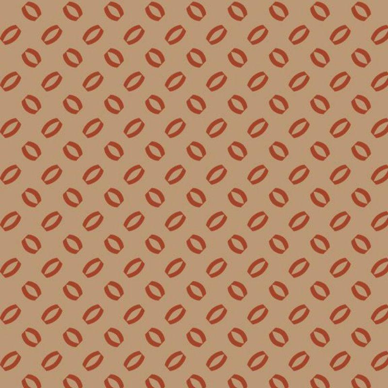 From sunrise to sunset Sheryl Johnson's new collection features the variety of shades and tones seen in the prairie sky. Farm-fresh corn, newly harvest crops and twinkle lights hanging on the porch provide Sheryl with the inspiration for her wonderful little prints, perfect for recreative vintage inspired quilts. Her yellows, cheddars, and golds are bright and warm, with a few tans, creams and a touch of red to round out the collection. This fabric features a geometric design in red on light brown . 100% Cotton, 44" Wide