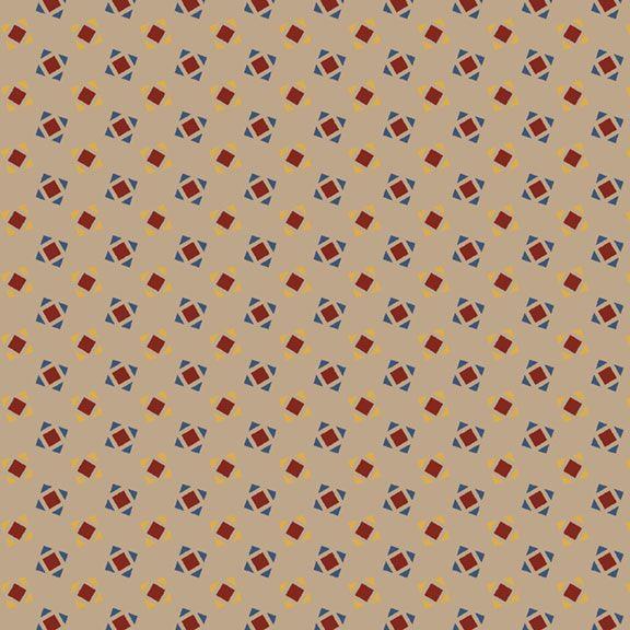 This fabric in the Favorite Fibers collection by Sheryl Johnson from Marcus Fabrics features red squares on tan brown. 100% Cotton, 44" Wide.