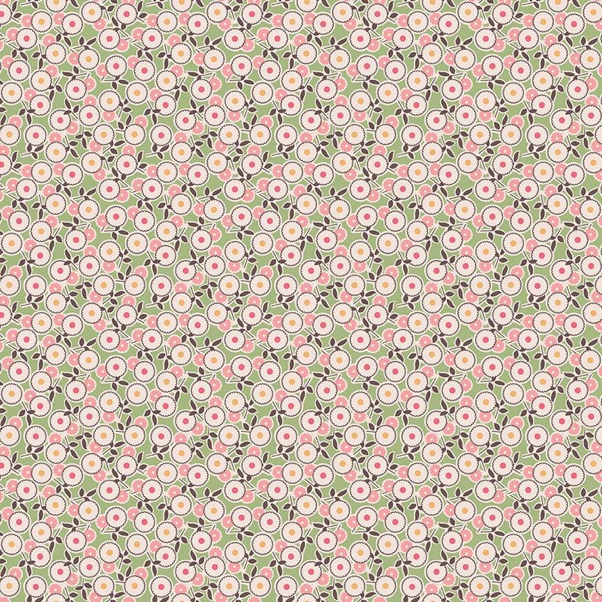 Old fashioned and charming, Mercantile by Lori Holt of Bee In My Bonnet for Riley Blake pays homage to the Herriman Mercantile that her grandmother Mildred (Millie) owned, located in the center of their home toen. Lori learned to quilt from Millie and her five great-aunts, Isabelle, Marjorie, Jesse, Edith, and Hazel. Full of precious memories of a time gone by, each print is affectionately named in this beautiful collection that features a rich and playful vintage color palette that you've come to love from Lori. This print features scattered blossoms and sprigs of leaves. 100% Cotton, 44" Wide.