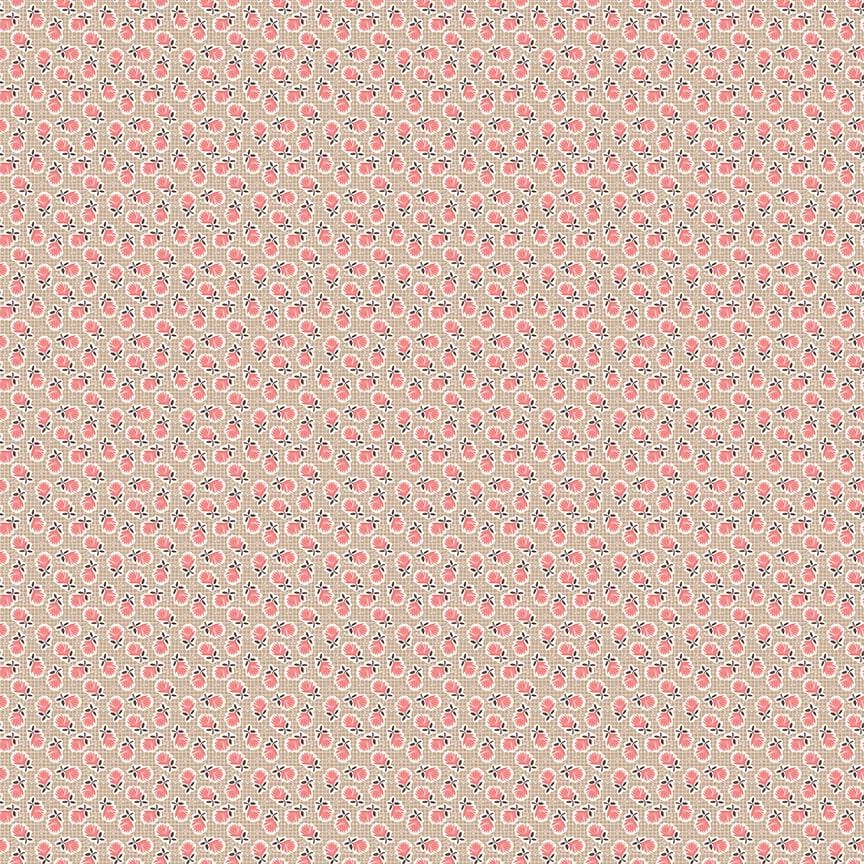 Old fashioned and charming, Mercantile by Lori Holt of Bee In My Bonnet for Riley Blake pays homage to the Herriman Mercantile that her grandmother Mildred (Millie) owned, located in the center of their home toen. Lori learned to quilt from Millie and her five great-aunts, Isabelle, Marjorie, Jesse, Edith, and Hazel. Full of precious memories of a time gone by, each print is affectionately named in this beautiful collection that features a rich and playful vintage color palette that you've come to love from Lori. This print features scattered tiny blosssoms on a pink grid background. 100% Cotton, 44" Wide.