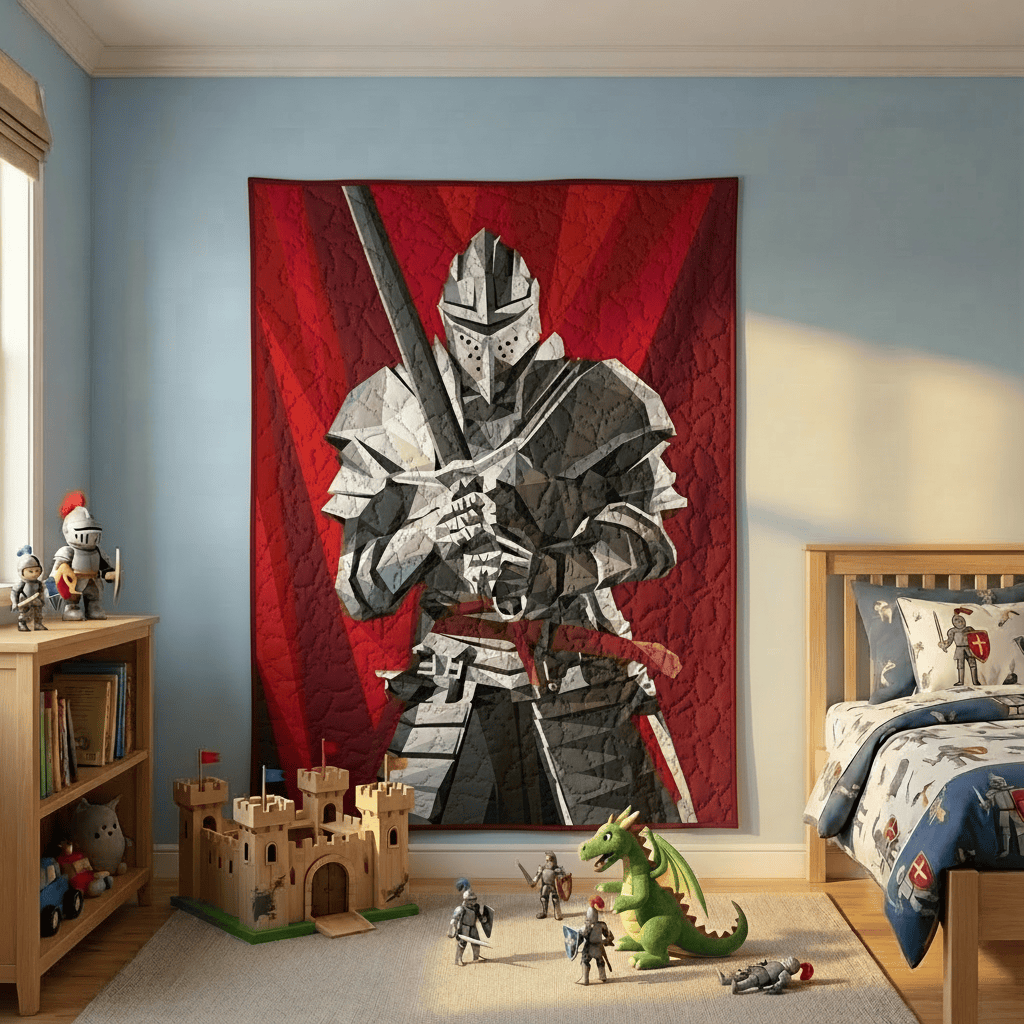 Sir Legitsalot, designed by Legit Kits, is a bold and detailed quilt that makes a striking statement for history buffs, gamers, and fantasy book lovers alike. Rich reds and layered shades of gray give this armored knight incredible depth, movement, and visual drama.