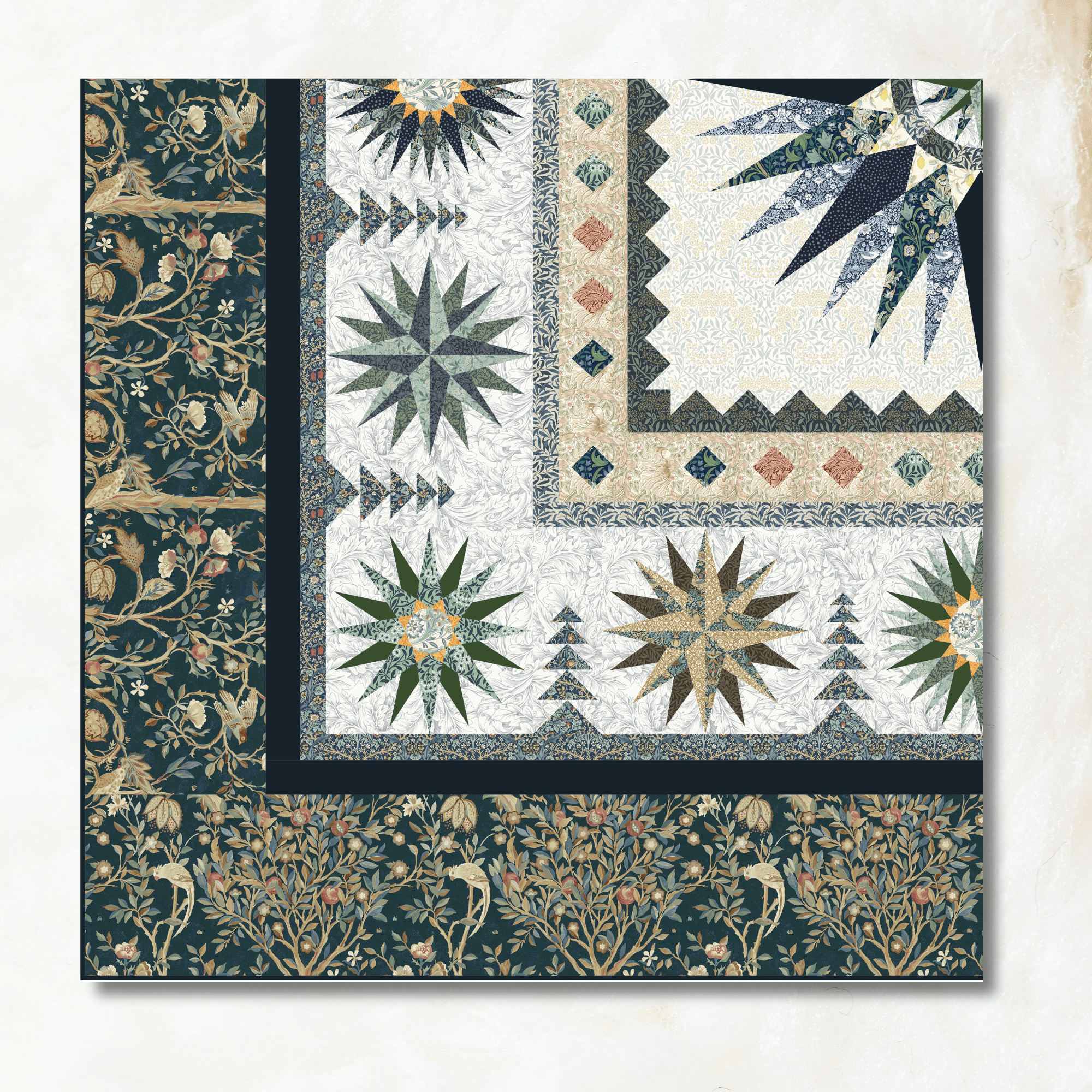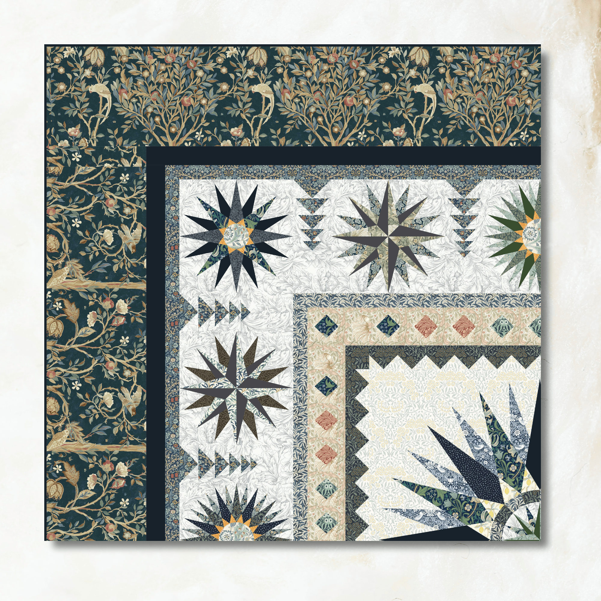 • Foundation Paper Piecing for crisp points and precise construction.