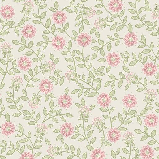 This fabric from the Backings & Basics collection designed by Benartex Studio for Benartex features scattered pink flowers on a light green background. 100% Cotton, 108" Wide