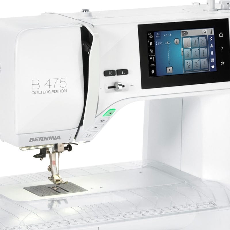 With 840 stitch patterns, including decorative and utility stitches, as well as multiple buttonhole options, the 475 QE is versatile enough for a wide range of projects. Quilters will appreciate its compatibility with the Bernina Stitch Regulator (optional), ensuring perfect free-motion quilting. The 4.3-inch color touchscreen provides intuitive navigation and easy customization of stitch settings.