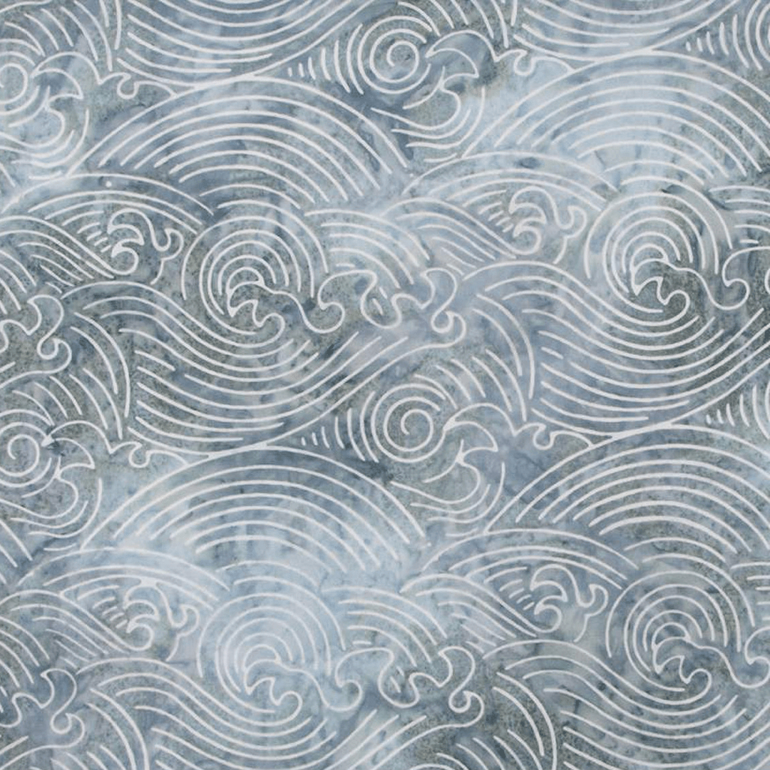 The Expressions Batiks Tjaps by Riley Blake Designs are great for quilting, apparel and home decor. Tjap, pronounced "chop," is a batik fabric stamp created with thin strips of copper that are manipulated by hand into florals, geometrics, or other motifs. These beautiful motifs are then welded onto a metal base. The motifs are typically denser and medium or large in design. Color combinations vary for more depth and movement. Riley Blake Designs batiks are ethically sourced and made with the highest quality fabric. Each hand-dyed print is designed and developed by cultivating relationships with true batik artisans in Indonesia. Due to the hand-crafted nature of batiks, fabric may vary from image. This fabric features a crashing waves design in white on light grey. 100% Cotton, 44" wide.