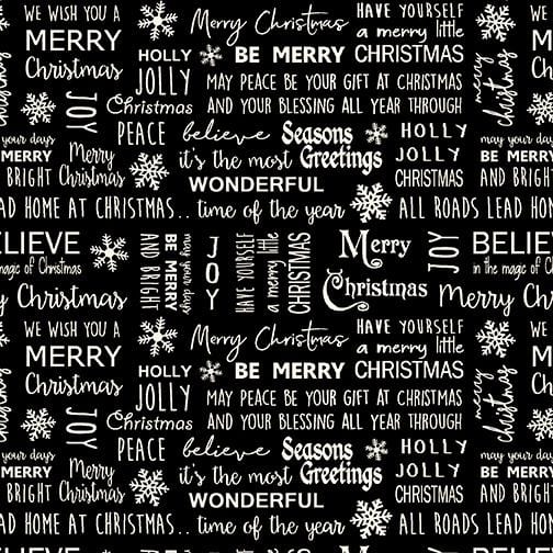 Nothing says it’s the holiday season more than festive plaid prints, mittens, candy canes and trucks filled with freshly cut Christmas Trees! The Jingle Bell Flannel collection by Painted Sky Studio brings all of these holiday treats together in a cozy collection of flannel fabrics. From Benartex, these prints are perfect for every holiday project - just imagine all of the quilts, pillows, and blankets you can create! This fabric features various Christmas greetings written in white with scattered large snowflakes on black. 100% Cotton Flannel, 44" Wide. *FABRIC NOT INTENDED & NOT SUITABLE FOR CHILDREN'S SLEEPWEAR*
