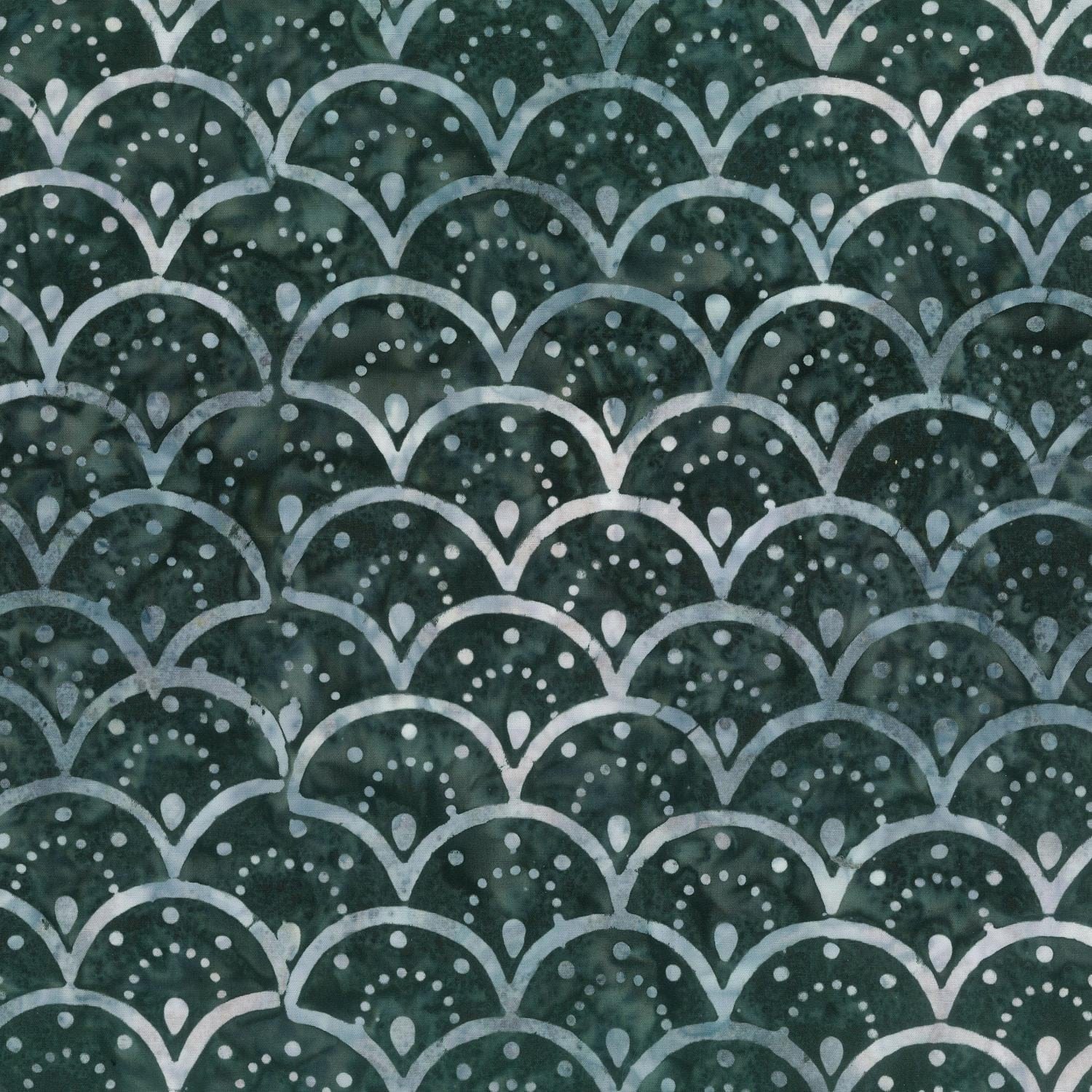 This batik in the Pearls collection designed by Banyan Batiks Studio from Banyan Batiks Northcott features clam shells with dots in dark gray. 100% Cotton, 44" Wide.