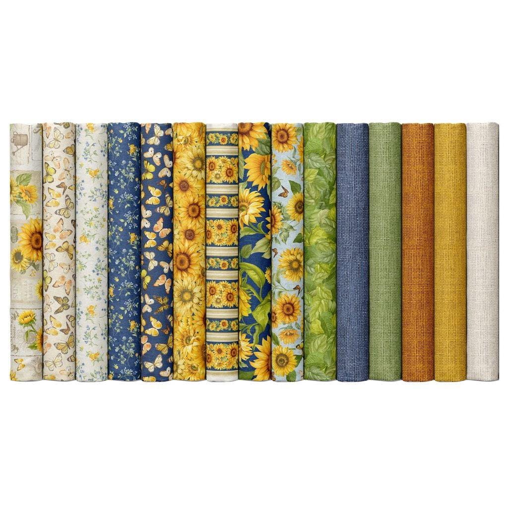 The Sunflower Farm collection by Timeless Treasures captures the charm of rustic countryside living with vibrant, sun-kissed sunflowers at its heart. Featuring lush florals, cheerful sunflower bouquets, and coordinating patterns like gingham checks and rustic wood textures, this collection is perfect for quilting, home décor, or crafting projects. The warm palette of golden yellows, earthy greens, and soft browns evokes a cozy, natural ambiance. With its stunning detail and versatile designs, the Sunflower Farm collection brings the beauty of a sunlit farm into your creations, making it ideal for those who love rustic elegance and nature-inspired themes. 100% Cotton. 44" Wide.