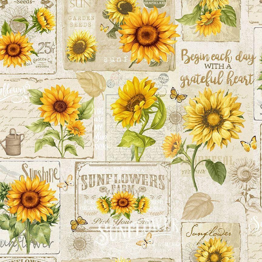 The Sunflower Farm collection by Timeless Treasures captures the charm of rustic countryside living with vibrant, sun-kissed sunflowers at its heart. Featuring lush florals, cheerful sunflower bouquets, and coordinating patterns like gingham checks and rustic wood textures, this collection is perfect for quilting, home décor, or crafting projects. The warm palette of golden yellows, earthy greens, and soft browns evokes a cozy, natural ambiance. With its stunning detail and versatile designs, the Sunflower Farm collection brings the beauty of a sunlit farm into your creations, making it ideal for those who love rustic elegance and nature-inspired themes. 100% Cotton. 44" Wide.